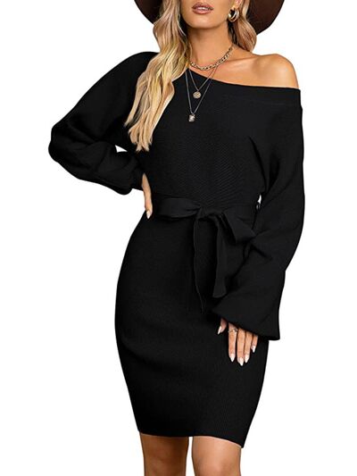 Plus Size One-Shoulder Sleeveless Tied Dress