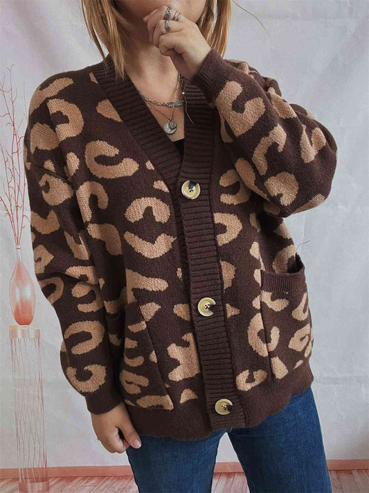 V-Neck Button-Down Dropped Shoulder Cardigan