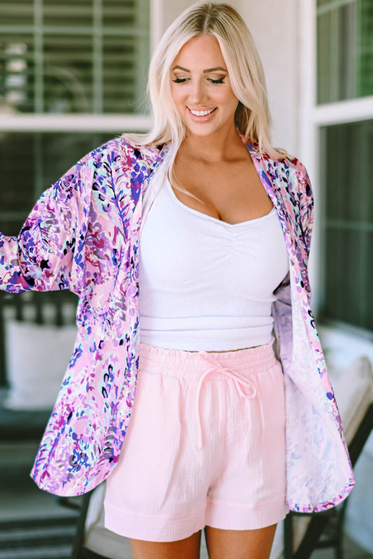 Open Front Contrast Color Balloon Sleeve Cardigan