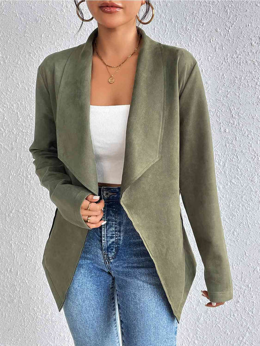 Plus Size Buttoned Lapel Collar Long Sleeve Blazer