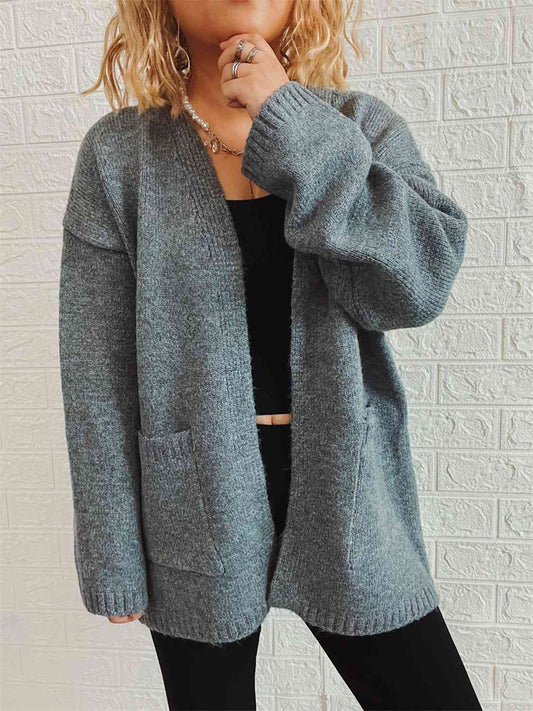 Open Front Long Sleeve Cardigan with Pockets