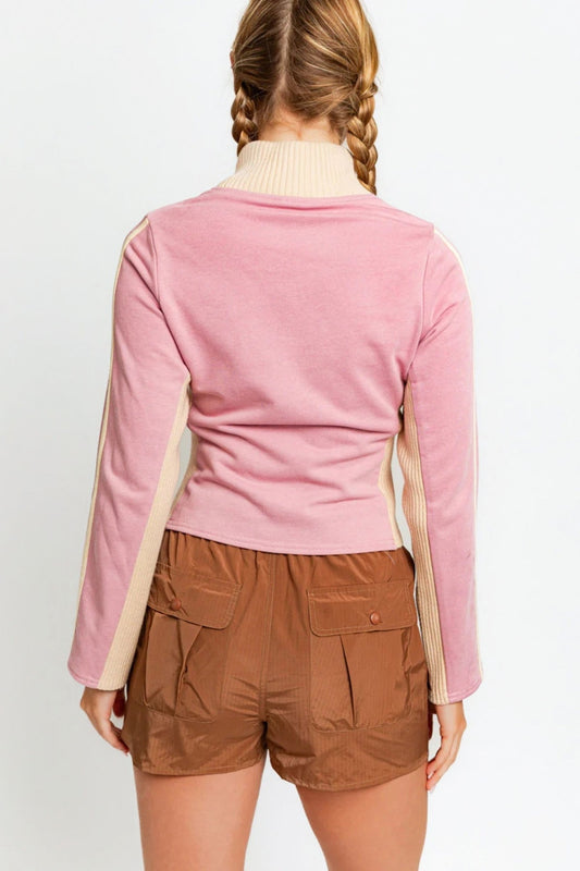 Culture Code Full Size Ribbed Zip Up Drawstring Hooded Jacket