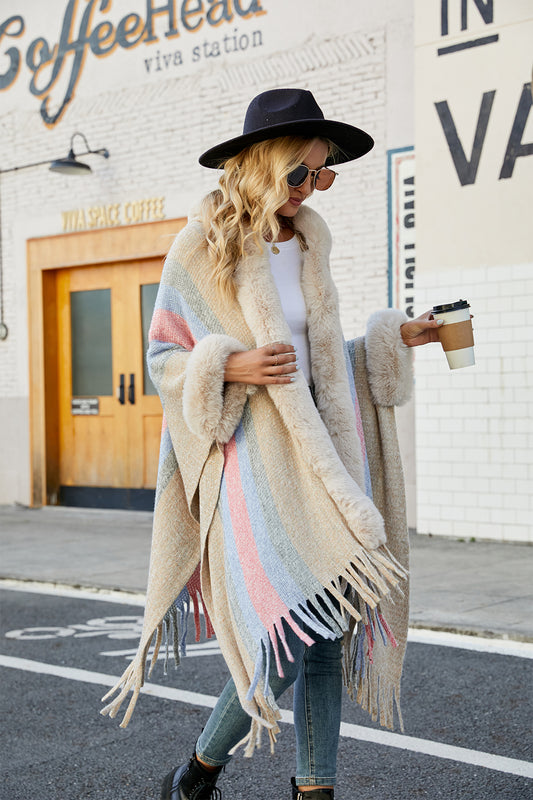 Color Block Fringe Detail Poncho