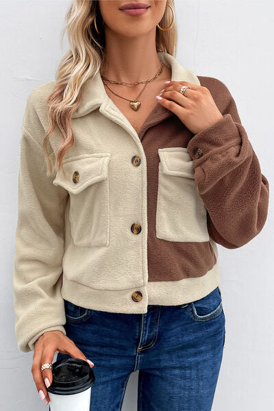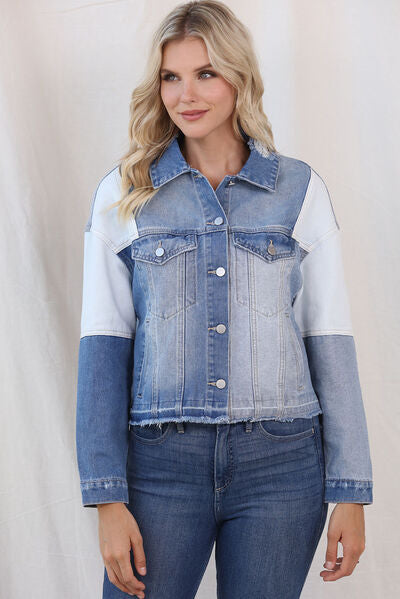 Pearl Detail Button Up Raw Hem Denim Jacket