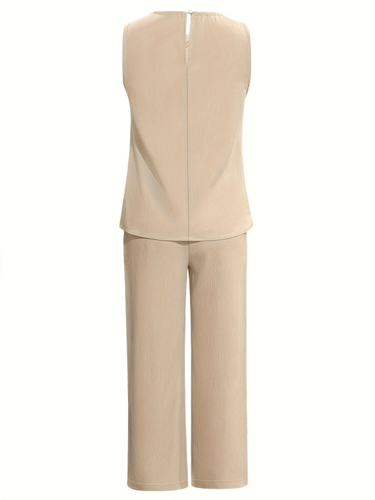 Crisscross Sleeveless Top and Wide Leg Pants Set