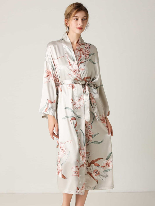 Sold outFloral Tie Waist Long Sleeve Robe