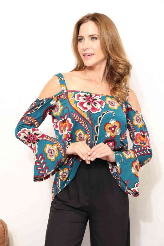 Sew In Love Full Size Floral Cold Shoulder Blouse