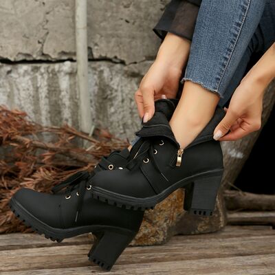PU Leather Round Toe Block Heel Boots
