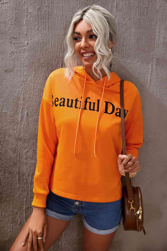 BEAUTIFUL DAY Graphic Drawstring Hoodie