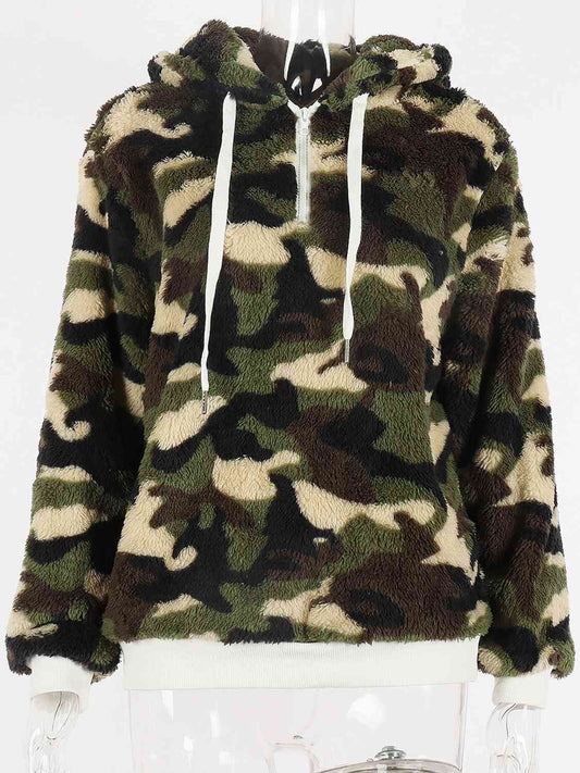 Quarter-Zip Drawstring Teddy Hoodie