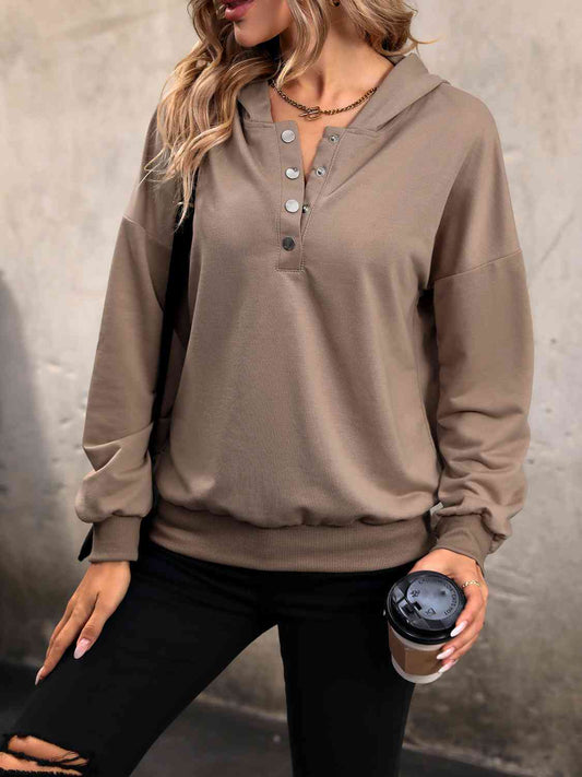 Dropped Shoulder Button-Down Hoodie